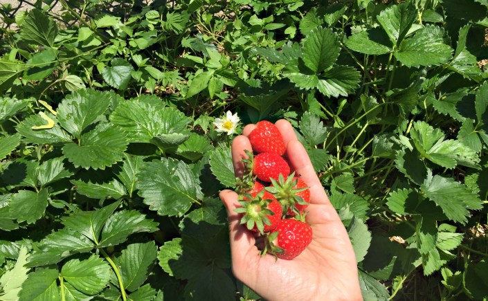 In the tomato realm, we have so many and so many large varietals (we weren’t totally sure what they were when we planted them!) that we needed to shuffle some around because they were getting crowded. Several plants were potted up to sell at the Windsor Terrace Food Coop; thanks to Corey and Jo for coordinating! We’ve started caging up our tomatoes, and we spied a few tiny fruits. So far we are harvesting strawberries, greens, and herbs and can’t wait to start picking tomatoes too.