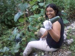 picking zucchini
