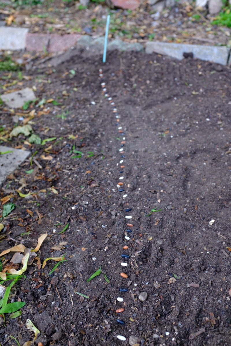 Tricolor bush bean row
